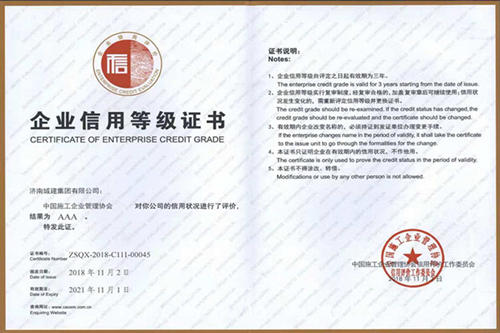 集团荣获“中国施工企业协会AAA级信用企业”