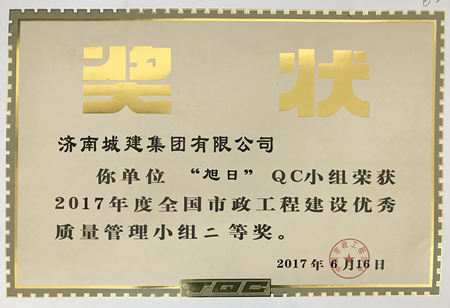 “旭日”QC小组荣获2017年度天下市政工程建设优异质量治理小组二等奖