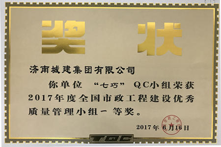“七巧”QC小组荣获2017年度天下市政工程建设优异质量治理小组一等奖