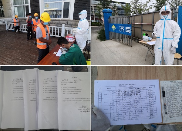 当烟台莱山区第一例南京关联病例确诊后,烟台黄山路项目部便紧迫启动防疫应急预案,迅速对项目部治理职员及劳务步队举行周全的行踪排查,同时组织全员举行核酸检测。通过一日三次体温丈量、宿舍消毒、全员签署《防控疫情责任书》、暂停施工、设立专职门卫严控职员收支等严酷的防疫步伐,有用预防了疫情在工地的爆发。同时,当收到烟台开发区暂时隔离点缺乏关闭物资的新闻后,项目部连忙安排职员准备抗疫物资,第一时间送往暂时隔离点,同时协助医务职员举行职员车辆的疏导,包管隔离点事情的有序举行。