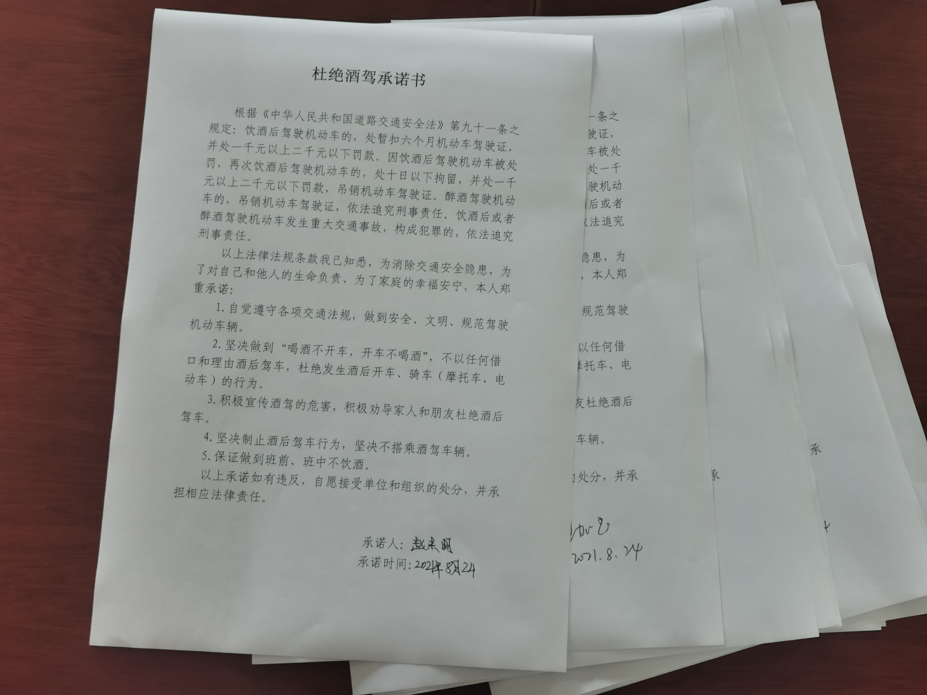五分公司组织签署《拒绝酒驾允许书》
