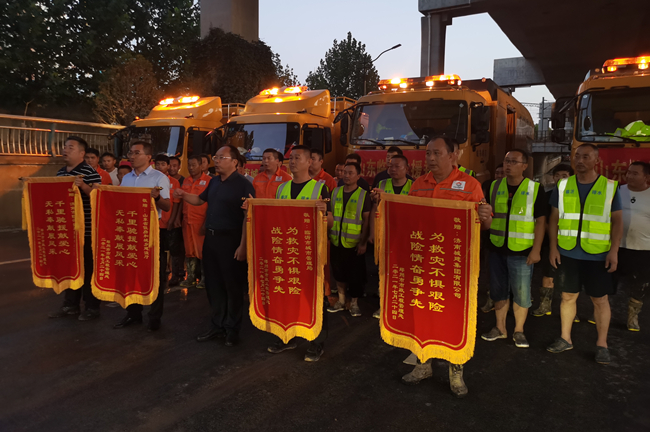 在抗洪救灾时代,集团应抢救援队获得了国家住建部和郑州市、区各级向导、宽大市民的关注和支持。23日破晓3点,国家住建部都会建设司副司长韩煜来到现场观察排水希望并慰问救援队员。周边市民们看到车上悬挂“济南AG8旗舰厅集团应急抢险队”条幅,纷纷赶来送包子、利便面、矿泉水等食物,让队员们倍感温温暖鼓舞。抢险使命竣事时,集团救援队收到了郑州市市政工程治理处赠予的锦旗。