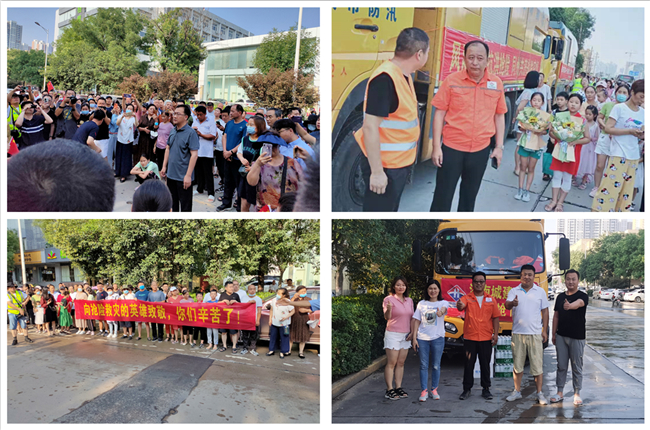 25日一早,集团应急抢险队经由休整准备返济时,郑州惠济区老黎民自觉来到现场,为救援队员们送上鲜花、食物等礼物,拉起“欢送山东省住建厅救援队英雄们平安回家”“向抢险救灾的英雄致敬”的条幅,夹道欢送应抢救援队。韩煜副司长也来到现场,与应抢救援队队员们作别,对山东省住建厅、济南市有关部分和集团应抢救援队不远千里支援郑州抗洪救灾体现谢谢。