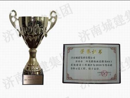 济南市二环东路地面蹊径及BRT系统建设工程被评为2010年度天下市政金杯树模工程