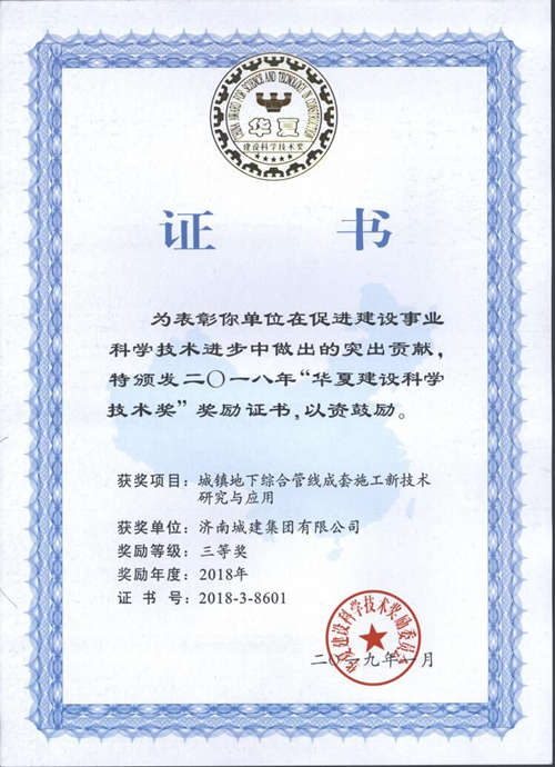 集团《城镇地下综合管线成套施工新手艺研究与应用》荣获中原建设科学手艺奖三等奖