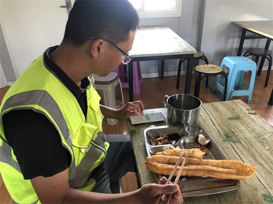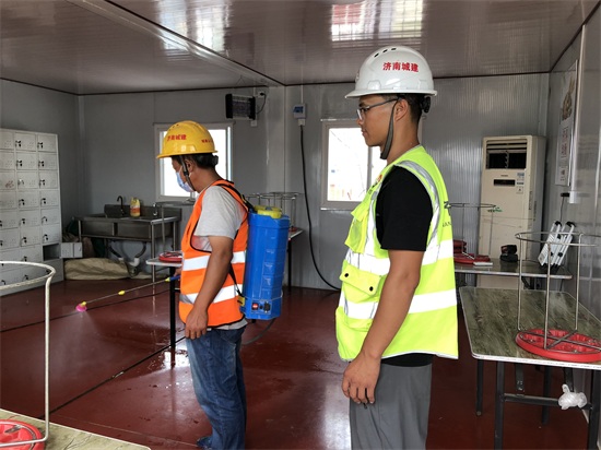7:20  µ½¸÷²½¶ÓËÞÉáÇø¼ì²é·ÀÒߺÍÏû¶¾ÇéÐΡ£ÏîÄ¿²¿ÑÏ¿áÖ´Ðм¯ÍÅ·ÀÒßÒªÇó£¬ÑÏ¿ØÍâÀ´Îñ¹¤Ö°Ô±ÉϸÚ£¬ÌìÌì׼ʱ¶Ô²ÍÌüºÍËÞÉáÏûɱÁ½´Î ¡£Ëû³£¶Ô¹¤ÈË˵£º¡°´÷ºÃ¿ÚÕÖ£¬²âÌåΣ¬ºÈË®Ó÷¹Ç°Ïȵ½Ï´ÊÖ³ØÏ´ÊÖ¡£¡±