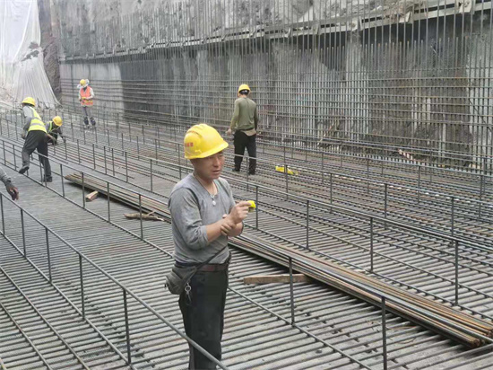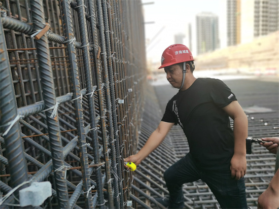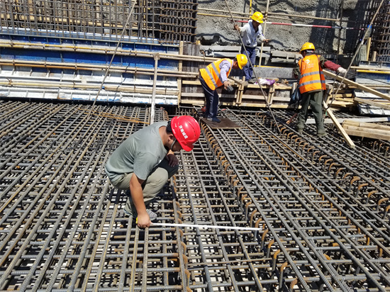 8:50 À´µ½µÚ5½Úµ×°å¸Ö½îÊ©¹¤Çø£¬Äóö¾í³ß×ÐϸÕÉÁ¿¸Ö½î°óÔú¼ä¾à¡¢µ×°åºñ¶È¡¢Ä£°å±£»¤²ãºñ¶ÈµÈ¡£ÕâÒ»½Ú±Ã·¿´¦ÓÐÈýÌõ¹ýˮͨµÀ£¬Ò²ÓÐÍâ˦ÖÁÖÎÀíÓ÷¿µÄµØÏÂͨµÀ£¬ÊÇÒ»¸ö¹¤Ðò½ÏÎªÖØ´ó¡¢±ØÐè¼Ó±¶ÖØÊÓµÄÒªº¦Ê©¹¤Î»Öã¬ÐèÒª×ÐϸºË¶Ô¹µ²Û³ß´ç¡¢¸ß¶È¡¢Ô¤Âñ¼þλÖõȡ£